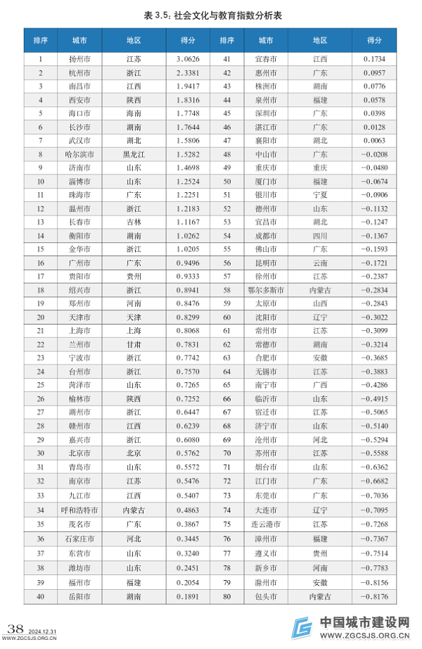 在中國(guó)城市社會(huì)文化與教育的綜合評(píng)估中,揚(yáng)州、杭州、南昌、西安、???、長(zhǎng)沙、武漢、哈爾濱、濟(jì)南以及 淄博脫穎而出,位列社會(huì)文化與教育指數(shù)分析表的前十名。這一結(jié)果充分彰顯了這些城市在社會(huì)文化建 設(shè)與教育發(fā)展方面所取得的顯著成就和獨(dú)特優(yōu)勢(shì),也反映出其在文化傳承創(chuàng)新、教育資源配置、文化產(chǎn)業(yè)發(fā)展以及 社會(huì)文明程度提升等多個(gè)維度的積極探索和卓越成效。