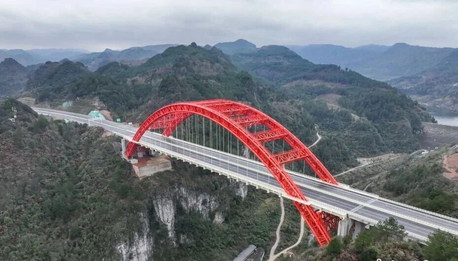 12月23日,航拍即將通車的貴州貴(陽)平(塘)高速公路馬場河特大橋。馬場河特大橋位于貴州省黔南布依族苗族自治州貴定縣盤江鎮(zhèn)馬場河村,為主跨260米的中承式鋼管混凝土桁架拱橋,全長381.5米。