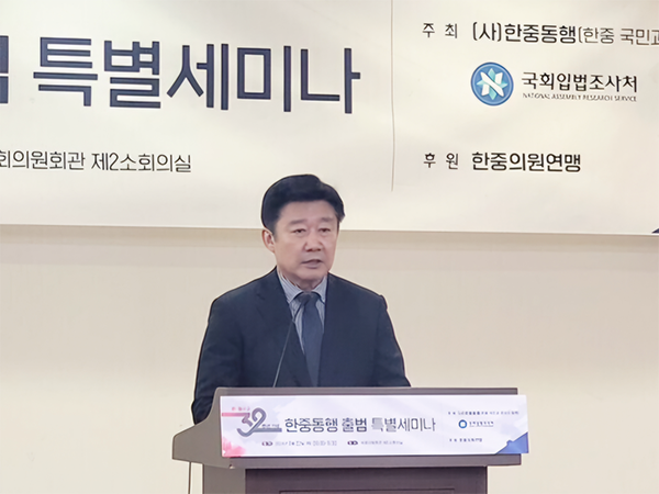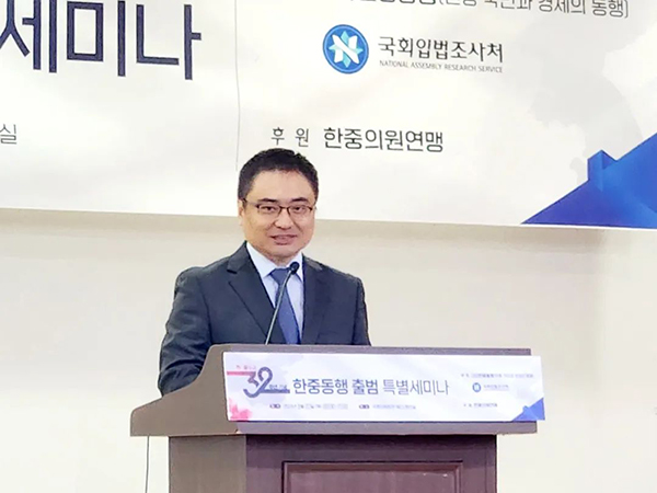 在中韓建交32周年紀(jì)念日(8月24日)來臨之際,8月22日,韓國國會立法調(diào)查處和社團(tuán)法人“韓中同行”(韓中國民和經(jīng)濟(jì)同行)共同主辦的特別研討會暨社團(tuán)法人“韓中同行”成立儀式在韓國首爾國會議員會館舉行。