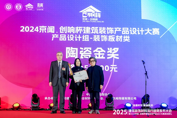 2025年1月5日,“2025建筑裝飾材料流行趨勢(shì)發(fā)布大會(huì)暨2024京聞·創(chuàng)響杯建筑裝飾產(chǎn)品設(shè)計(jì)大賽頒獎(jiǎng)典禮”在全國(guó)人大會(huì)議中心盛大舉行。本次大會(huì)由中國(guó)建筑裝飾協(xié)會(huì)主辦,中國(guó)建筑裝飾協(xié)會(huì)材料應(yīng)用分會(huì)、廣東京聞傳媒有限公司承辦。大會(huì)以“強(qiáng)基材勢(shì),質(zhì)創(chuàng)未來(lái)”為主題,邀請(qǐng)了中國(guó)建筑裝飾協(xié)會(huì)會(huì)長(zhǎng)王中奇、原國(guó)家質(zhì)檢總局總工程師劉兆彬、中國(guó)建筑裝飾協(xié)會(huì)副會(huì)長(zhǎng)兼副秘書長(zhǎng)單波、中國(guó)中建設(shè)計(jì)研究院有限公司總建筑師趙中宇、廣東京聞傳媒有限公司董事長(zhǎng)梅宏成等有關(guān)部門領(lǐng)導(dǎo)、建筑裝飾材料企業(yè)、上下游產(chǎn)業(yè)鏈企業(yè)、建筑與室內(nèi)設(shè)計(jì)師、設(shè)計(jì)研究院及施工方等眾多領(lǐng)域的專業(yè)人士、合作伙伴、媒體朋友400多位嘉賓出席會(huì)議,共同交流研討建筑裝飾材料的未來(lái)發(fā)展趨勢(shì),以及表彰在設(shè)計(jì)領(lǐng)域取得杰出成就的人才。