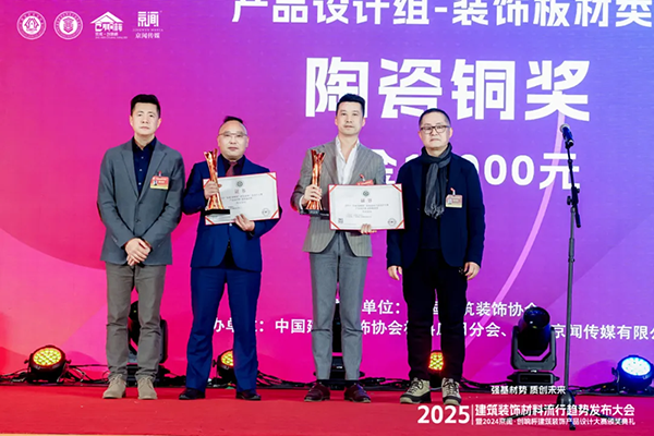 在產(chǎn)品設(shè)計(jì)組瓷磚類,諾貝爾瓷磚獲得金獎(jiǎng),冠珠瓷磚、“獨(dú)角冰翠王”獲得銀獎(jiǎng),依諾瓷磚、“奢瑜”獲得銅獎(jiǎng)。