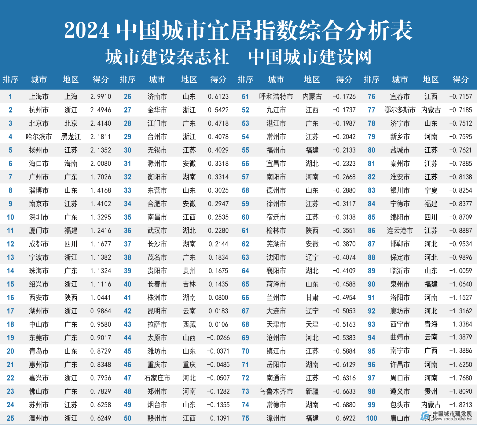 具體而言,倘若某城市的得分恰好為“0”,那么這意味著該城市剛好處于這100個(gè)中國城市的平均水平線上;而當(dāng)?shù)梅殖尸F(xiàn)為正數(shù)時(shí),則表明該城市在宜居水平方面要高于這100個(gè)中國城市的平均水平;反之,若得分是負(fù)數(shù),就代表該城市的宜居水平相較于這100個(gè)中國城市的平均水平而言處于偏低的狀態(tài)。