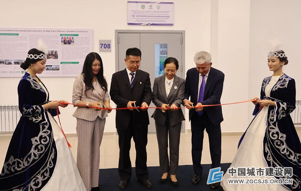 (大禹節(jié)水集團(tuán)高級(jí)副總裁、大禹裝備發(fā)展集團(tuán)董事長崔靜<左二>出席“中哈旱區(qū)高水效農(nóng)業(yè)國際聯(lián)合實(shí)驗(yàn)室”揭牌儀式)