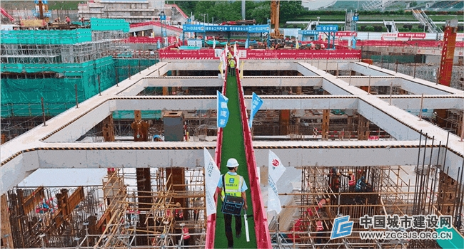項(xiàng)目技術(shù)部成立4支攻堅(jiān)小隊(duì),以精細(xì)化部署破解難題,打破傳統(tǒng)支護(hù)結(jié)構(gòu)施工,創(chuàng)新采用雙排樁+施工棧橋板的組合方案,推動(dòng)工序穿插“零空閑”,“擠”出3000平方米的作業(yè)面。6臺(tái)塔吊高效作業(yè),實(shí)現(xiàn)每日3000噸物料調(diào)度。