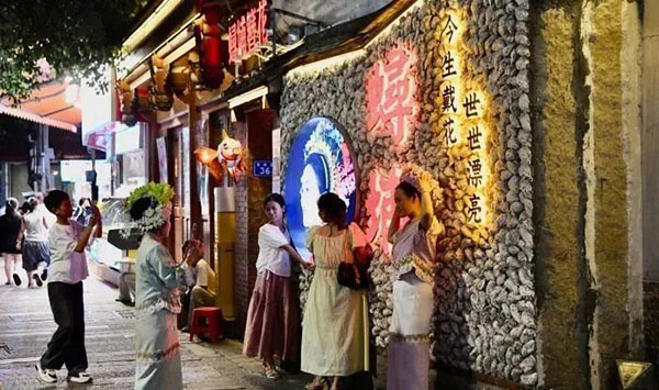 7月23日晚,福建泉州,游客在千年古街——西街游玩。西街是泉州最早開(kāi)發(fā)的街道和區(qū)域,自唐朝成街已超過(guò)1300年。這里有傳統(tǒng)的閩南紅磚古厝,也有近現(xiàn)代的騎樓和番仔樓,這里還保留了地道的泉州風(fēng)味美食,吸引眾多游客前來(lái)品嘗。