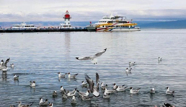 7月24日,水鳥(niǎo)在青海湖二郎劍景區(qū)湖面覓食。二郎劍景區(qū)位于青海省海南藏族自治州共和縣。盛夏時(shí)節(jié),青海湖宛如一顆藍(lán)寶石鑲嵌在青藏高原。青海湖裸鯉和水鳥(niǎo)在此和諧共生,繪就出一幅生態(tài)與人文交織的活力畫(huà)卷。