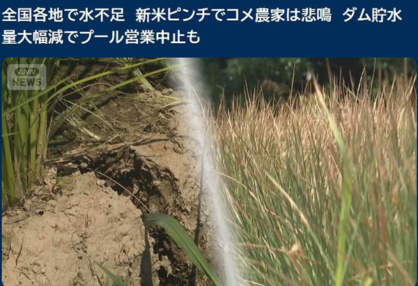 日本多地嚴(yán)重缺水水稻種植戶擔(dān)憂新米收成