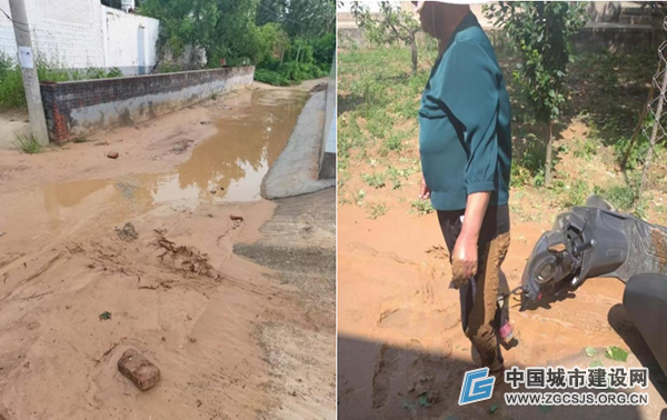 張家莊村村路被泥石流沖洗及村民摔倒受傷(村民提供圖片)