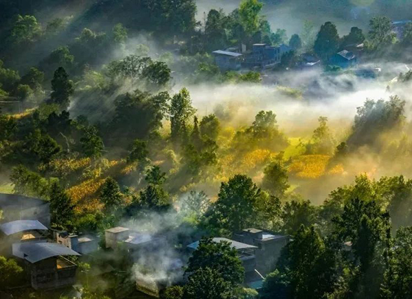 重慶酉陽(yáng):日出鄉(xiāng)村縹緲如畫(huà)
