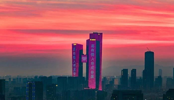 南京樓宇浪漫亮燈迎七夕