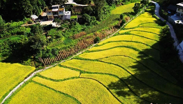 近日,在湖北省咸豐縣清坪鎮(zhèn)蘇家坪村,農(nóng)機手駕駛收割機搶收稻谷。初秋時節(jié),咸豐縣低山地區(qū)的早稻相繼成熟,村民利用晴好天氣搶收搶曬,確保顆粒歸倉,村落里呈現(xiàn)出一派豐收景象。圖為咸豐縣低山地區(qū)的稻田。