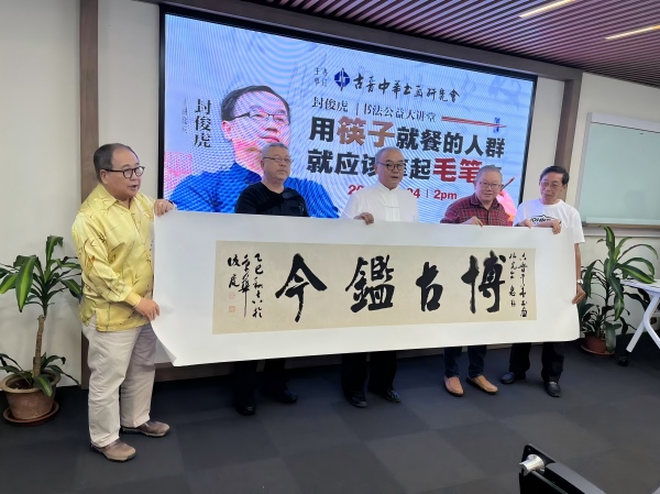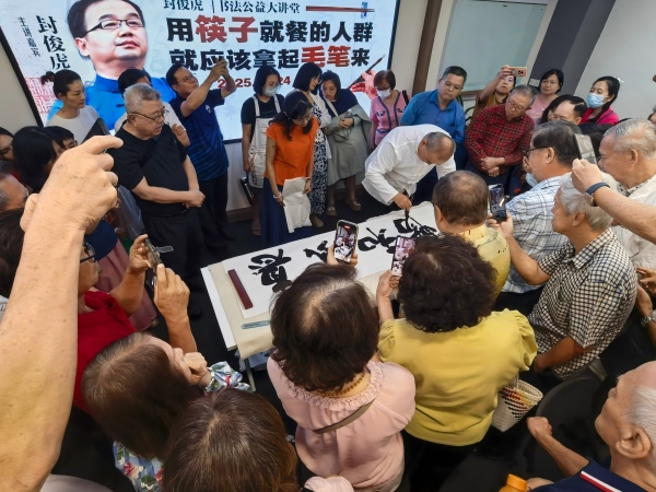 為紀(jì)念中國(guó)人民抗日戰(zhàn)爭(zhēng)暨世界反法西斯戰(zhàn)爭(zhēng)勝利80周年,一場(chǎng)聚焦中華文化根脈的書(shū)法盛宴在馬來(lái)西亞沙撈越首府古晉隆重舉行。應(yīng)古晉中華書(shū)畫(huà)研究會(huì)之邀,著名書(shū)法家、文化學(xué)者封俊虎先生于8月24日舉辦了書(shū)法公益講座,其最亮點(diǎn)的發(fā)言“用筷子就餐的人群,就應(yīng)該拿起毛筆來(lái)”在現(xiàn)場(chǎng)及當(dāng)?shù)厝A人圈引發(fā)強(qiáng)烈共鳴,為中華文化海外傳承注入新活力。