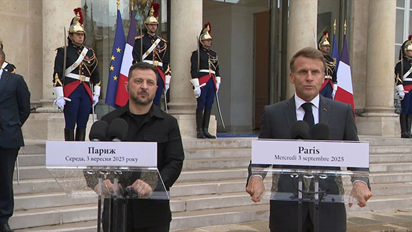 當?shù)貢r間9月3日,烏克蘭總統(tǒng)澤連斯基抵達巴黎,與法國總統(tǒng)馬克龍舉行會晤。雙方在會晤后發(fā)表了聯(lián)合聲明。馬克龍表示,過去幾周的密集工作使歐洲各國已“準備好為烏克蘭提供安全保障”。馬克龍說,“烏克蘭和烏克蘭人民的安全,也是法國和歐洲的安全”。