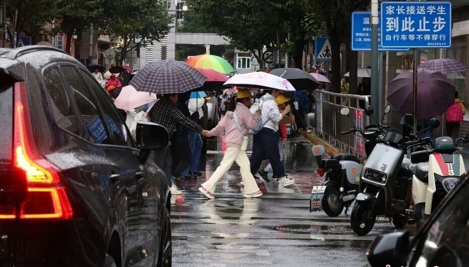 10月9日,北京市通州區(qū),持續(xù)降雨加重了國慶假期后早高峰的擁堵,民眾在雨中趕著通勤通學(xué)。