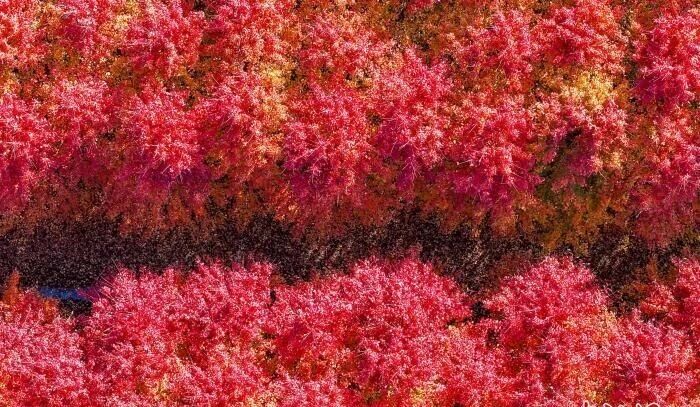 11月1日,山東省青島市萊西市上千畝紅楓層林盡染。