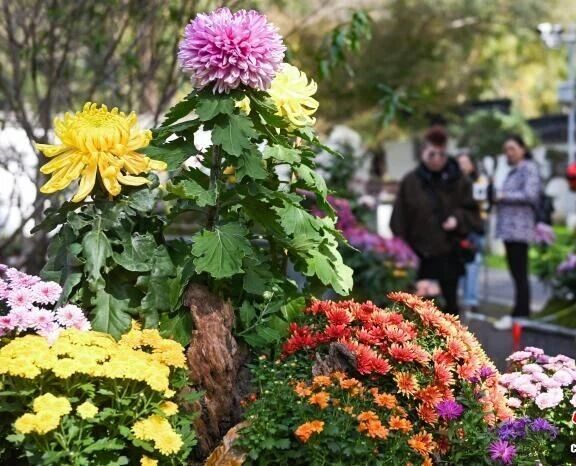 11月2日,江蘇南京,市民在東郊金秋菊展上欣賞展出的菊花,該展覽集中展出獨本菊、地被菊、切花菊等230余個菊花品種以及小型菊藝盆景。