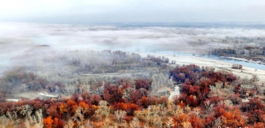 額爾齊斯河新疆北屯段現(xiàn)壯美晨霧景觀(guān)
