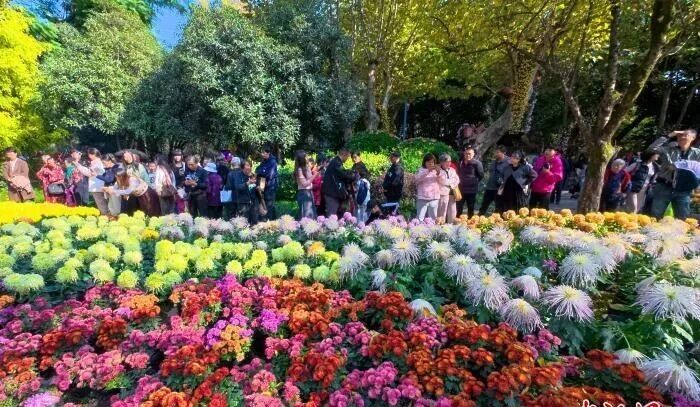 11月15日,四川成都市人民公園內(nèi)10萬余盆菊花競相綻放,金黃、純白、淡紫、淺紅等色彩交織碰撞,在冬日暖陽的映照下折射出絢爛光澤,引得游人紛紛駐足端詳、拍照留念。圖為公園里競相綻放的各色菊花。