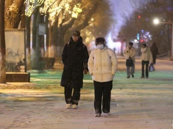 11月17日晚,青海西寧,市民拍攝雪景。受冷空氣影響,西寧市迎來降雪天氣。西寧氣象部門于15日發(fā)布寒潮黃色預(yù)警。