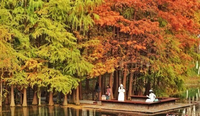 11月18日,從空中俯瞰湖北省宜昌市運(yùn)河公園,彩林與湖水在冬日的陽光里熠熠生輝,吸引眾多市民、游客前來賞景拍照。宜昌有“三峽門戶”之稱,近年來,該市在全國率先開展城市公園綠地開放共享試點(diǎn),持續(xù)推動公園與城市的完美融合,讓“推窗見綠、出門見園、四季見彩”成為現(xiàn)實(shí)。