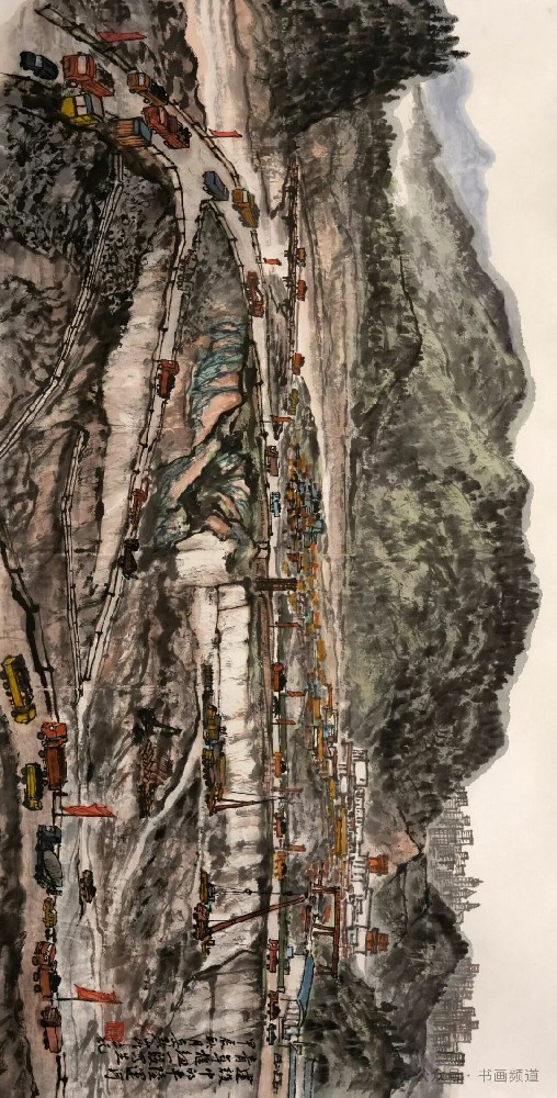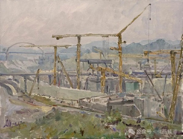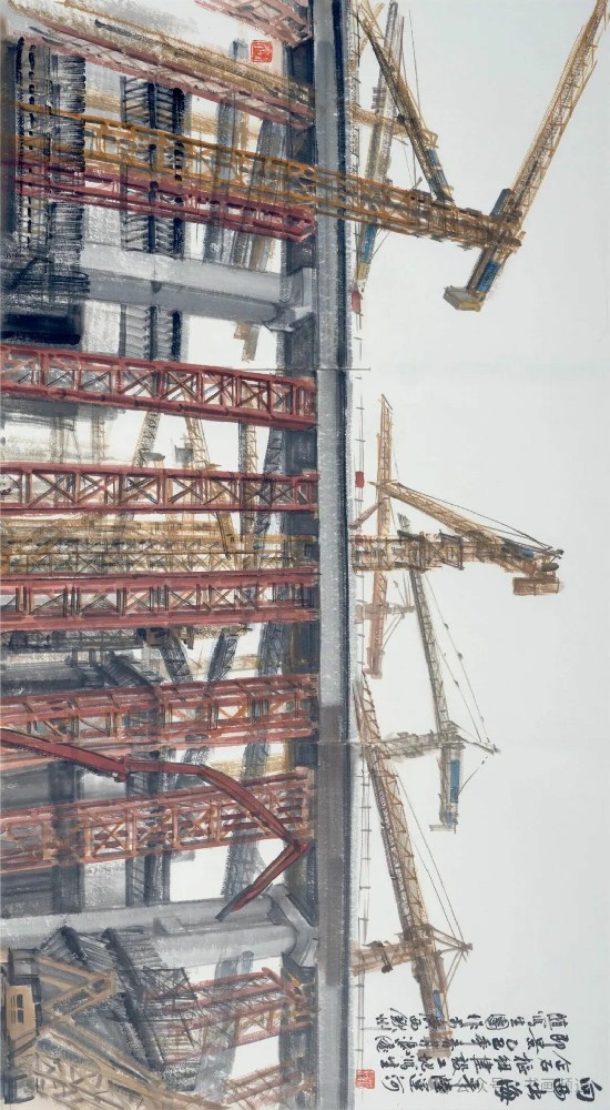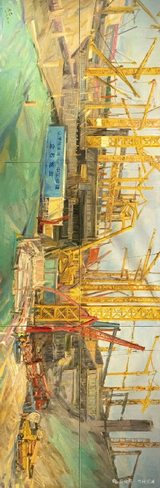 《建設中的平陸運河青年樞紐》69x138cm