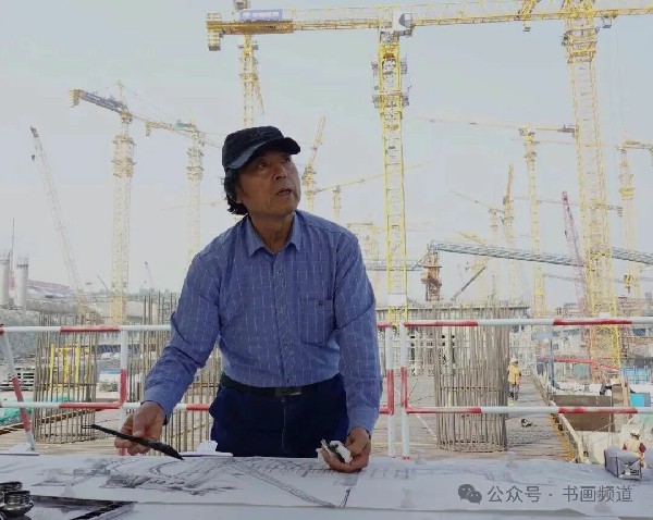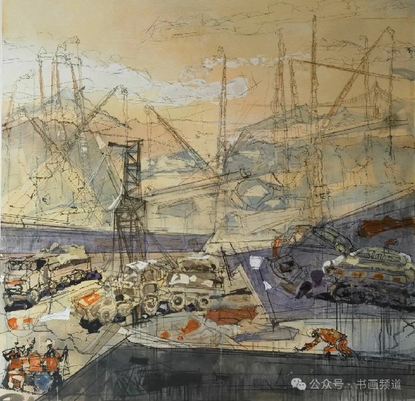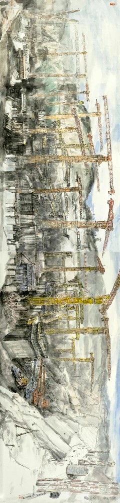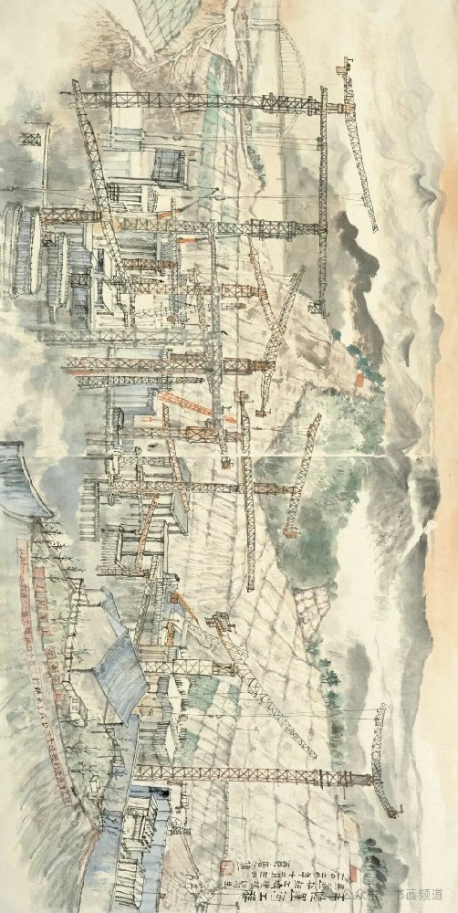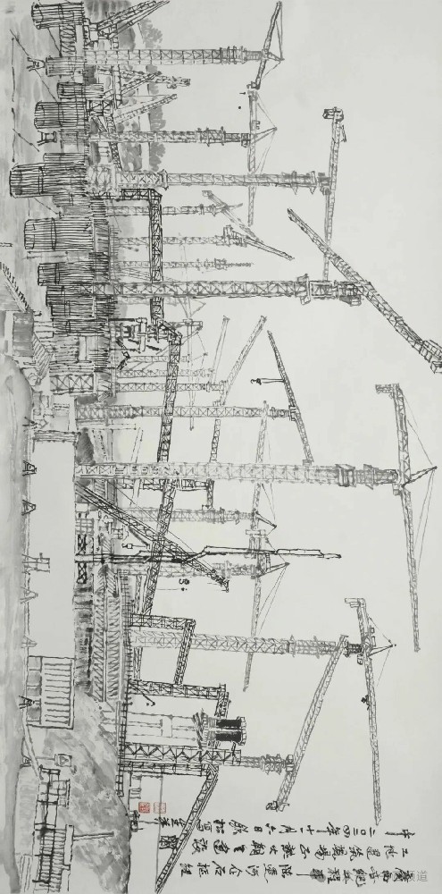 《平陸運河·馬道樞紐工地現(xiàn)場寫生》 50x100cm
