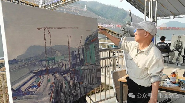 此次展覽精選采風活動創(chuàng)作的70余件中國畫、油畫與速寫力作,題材宏闊,形式多樣。無論是中國畫的寫意山水與工筆精微,油畫的厚重肌理與光影交織,還是速寫的酣暢淋漓和簡約明快,無不傾注了藝術家們的匠心獨運。畫筆下既有開鑿運河、氣貫長虹的撼人場面,也有對沿線自然風光、歷史遺跡與民俗風情的人文觀照,更有對未來運河通航后百舸爭流、千帆競發(fā)的詩意想象。這些作品或雄渾壯闊,或細膩婉約,或?qū)憣嵄普?,或意境悠遠,共同構(gòu)筑了一個多維、立體、流動的“平陸運河意象”,記錄了祖國南疆解放思想、創(chuàng)新求變、向海圖強、開放發(fā)展的時代脈搏。