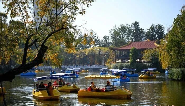 12月7日是大雪節(jié)氣,冬日的“春城”昆明陽(yáng)光明媚,氣溫宜人,眾多市民和游客來(lái)到翠湖公園游玩,親近自然。圖為游人在翠湖劃船。