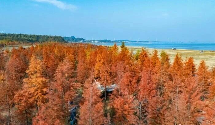 廣西賀州:濕地公園水杉換上冬日“紅妝”
