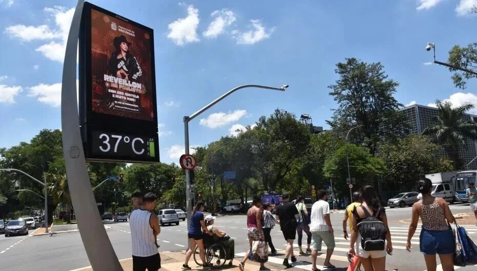當(dāng)?shù)貢r(shí)間12月27日,巴西圣保羅“避暑勝地”伊比拉布埃拉公園,氣溫監(jiān)測(cè)站錄得37攝氏度,市民在烈日下過馬路。自當(dāng)?shù)貢r(shí)間12月24日起,熱浪侵襲巴西。巴西國(guó)家氣象研究所對(duì)圣保羅州、里約熱內(nèi)盧州、米納斯吉拉斯州、南馬托格羅索州、圣埃斯皮里圖州等該國(guó)東南部、南部和中西部多個(gè)地區(qū)發(fā)布紅色高溫預(yù)警,警報(bào)持續(xù)至29日。