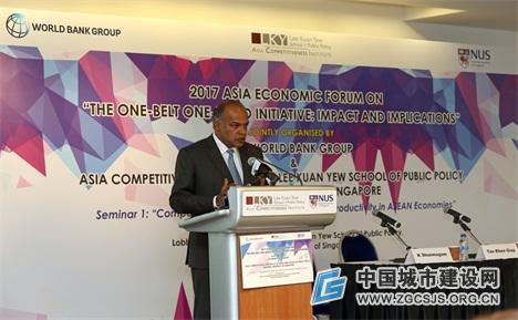 新加披內(nèi)政部長兼律政部長尚穆根K.Shanmugam、新加坡國立大學(xué)常務(wù)副校長陳永財TAN Eng Chye、新加坡樟宜機場集團和新加坡盛??毓杉瘓F主席廖文良、世界銀行新加坡主席Fatouma Toure Ibrahima、NUS李光耀公共政策學(xué)院院長馬凱碩和亞洲競爭力研究所所長陳企業(yè)博士等嘉賓出席了本次論壇并致辭。出席論壇的中方代表:城市建設(shè)雜志社社長王克劍、新疆建設(shè)兵團黨校(行政學(xué)院)副校長強始學(xué)、山東社會科學(xué)院省情與社會發(fā)展研究院院長候小伏、上海社會科學(xué)院應(yīng)用經(jīng)濟研究所副所長李偉和中國建設(shè)銀行新加坡分行總經(jīng)理任冬艷分別發(fā)表了演講。亞洲大學(xué)黃永強教授和中華經(jīng)濟研究院(臺灣)副院長王健全也出席了此次論壇。