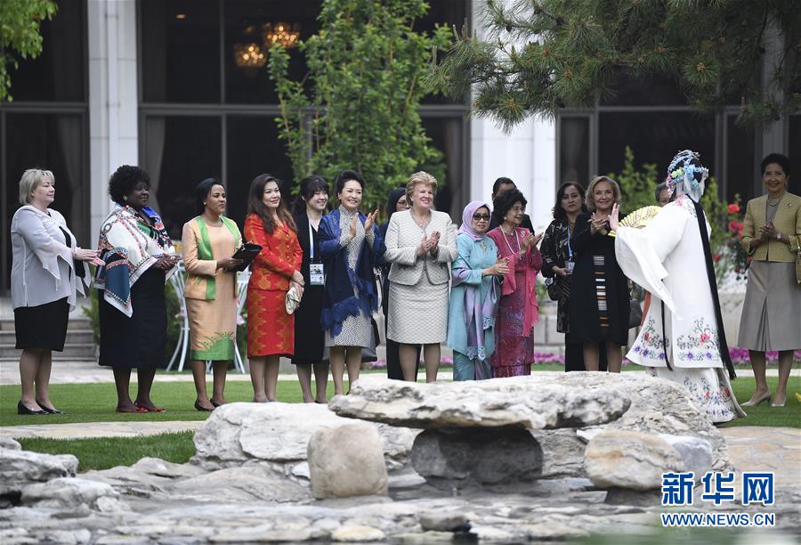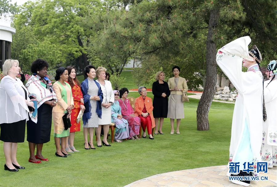 4月27日,國家主席習近平夫人彭麗媛在北京釣魚臺國賓館邀請出席第二屆“一帶一路”國際合作高峰論壇的外方領導人配偶欣賞中國昆曲和京劇表演。新華社記者 燕雁 攝 圖片來源:新華網