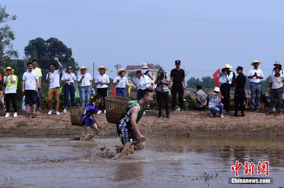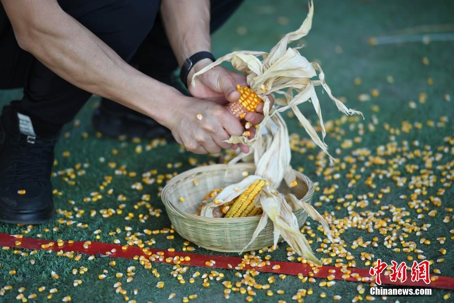 9月23日,重慶民眾比賽吃西瓜、搓玉米、挑農(nóng)活擔(dān)子等活動(dòng)慶豐收。當(dāng)日,重慶璧山農(nóng)民豐收節(jié)主題活動(dòng)在當(dāng)?shù)剞r(nóng)業(yè)科技創(chuàng)新中心舉行。來自璧山區(qū)各鄉(xiāng)鎮(zhèn)的村民代表齊聚一堂,他們用農(nóng)民趣味運(yùn)動(dòng)和田園民俗藝術(shù),表達(dá)出新農(nóng)村迎來農(nóng)業(yè)大豐收的喜悅。陳超 攝