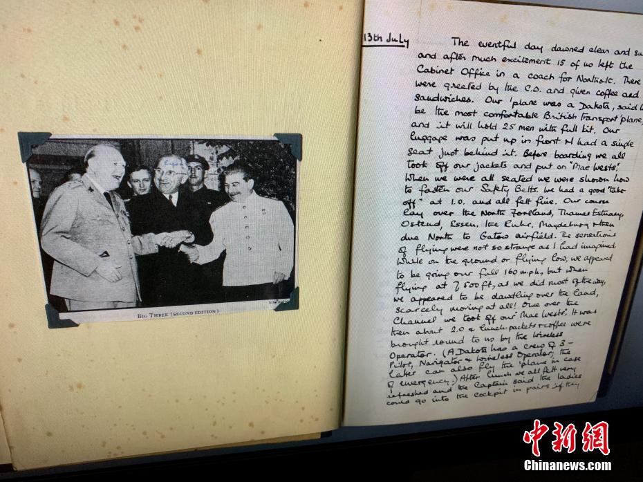 近日,位于德國波茨坦的采西林霍夫?qū)m舉辦專題展覽,紀(jì)念波茨坦會議舉辦75周年。中新社記者專程前往探訪這一重要?dú)v史事件留給今人的記憶與思考。圖為丘吉爾秘書喬伊·米爾沃德詳細(xì)記錄其所親歷波茨坦會議經(jīng)過的日記。中新社記者 彭大偉 攝