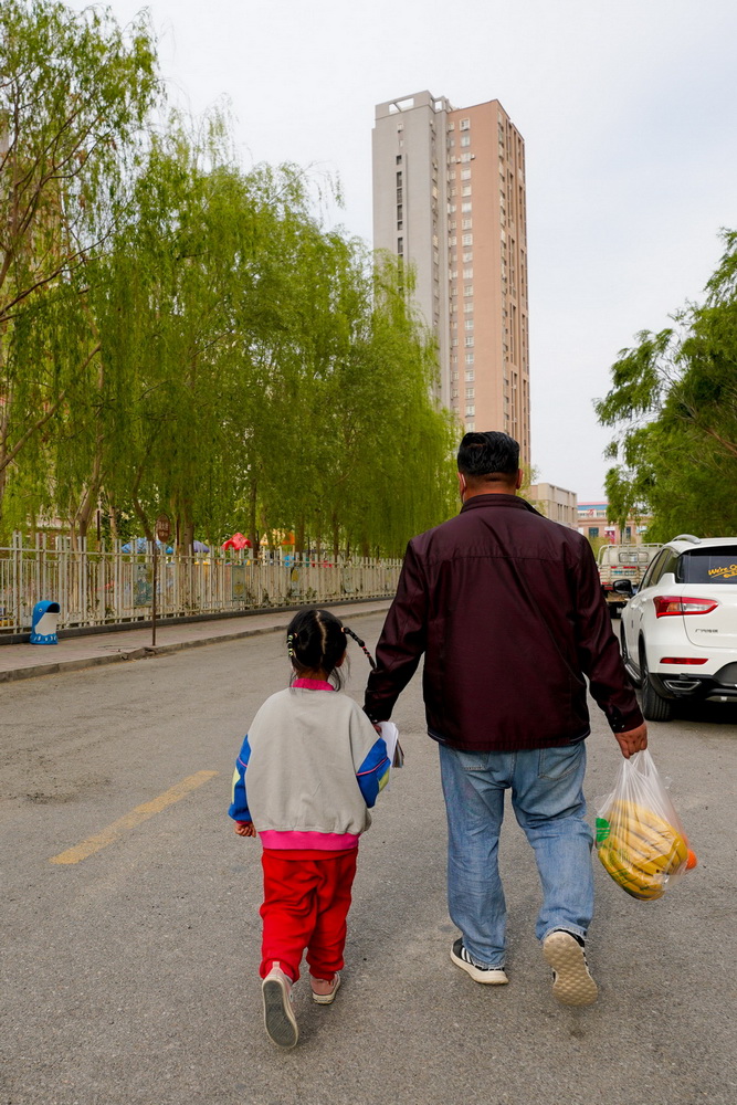 目前,地力夏提還成立了養(yǎng)殖合作社,養(yǎng)殖本地特產(chǎn)羅布羊,收益可觀。每天下午,地力夏提都會早早從棉田里走出,準(zhǔn)時去學(xué)校接女兒放學(xué)?!澳闱疲F(xiàn)在種棉花就跟上班一樣,定時定點(diǎn),當(dāng)初選擇當(dāng)棉農(nóng)一點(diǎn)也不錯。”地力夏提拉著女兒的小手,走進(jìn)尉犁縣城一處高樓林立的現(xiàn)代化小區(qū)里。