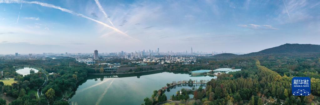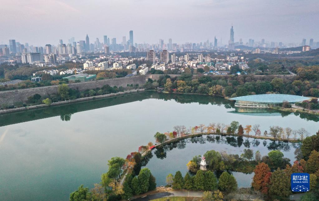 11月16日,晨曦中的南京前湖公園(無(wú)人機(jī)照片)。