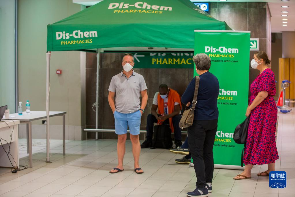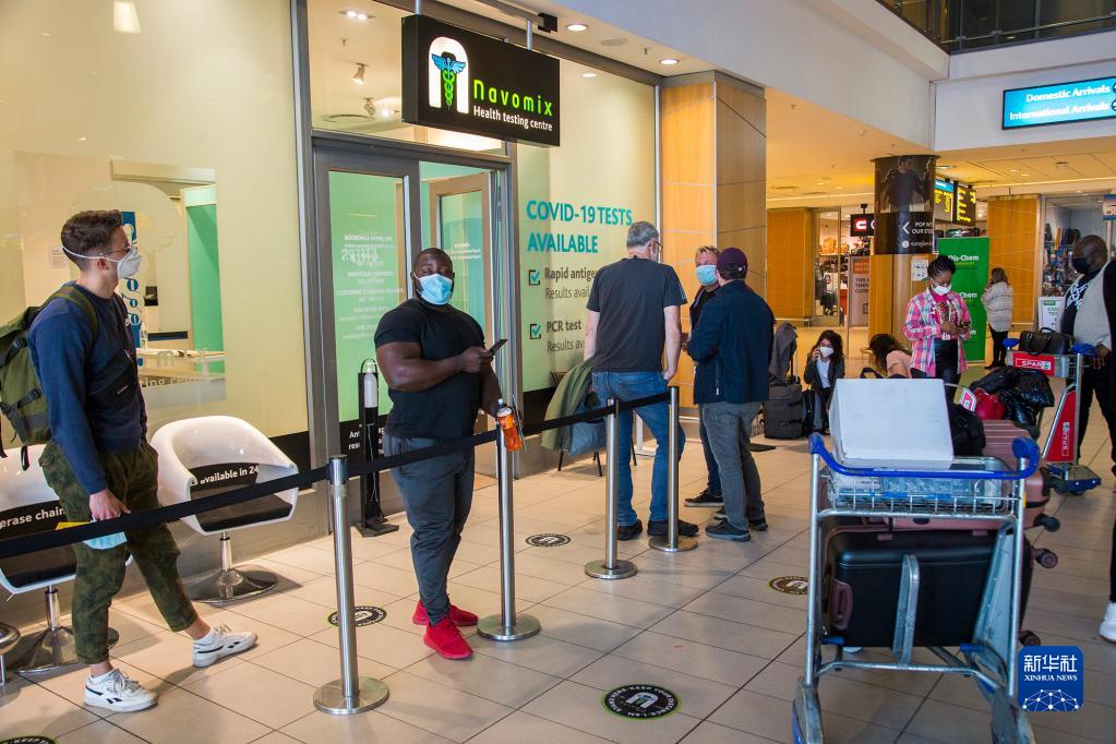 11月29日,旅客在南非開普敦國際機(jī)場等待接受新冠病毒檢測。