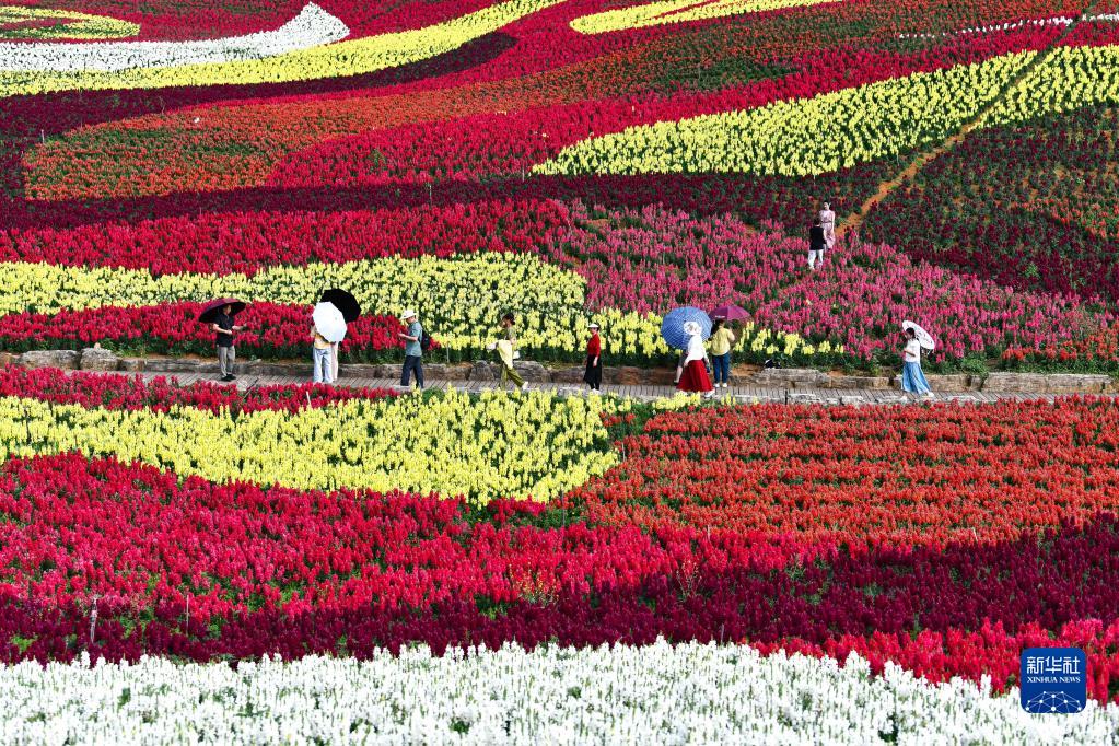 初夏時(shí)節(jié),貴州省黔東南苗族侗族自治州麻江縣宣威鎮(zhèn)藥谷江村種植的500余畝金魚(yú)草競(jìng)相開(kāi)花,色彩斑斕的花谷吸引眾多游客前來(lái)觀花賞景。