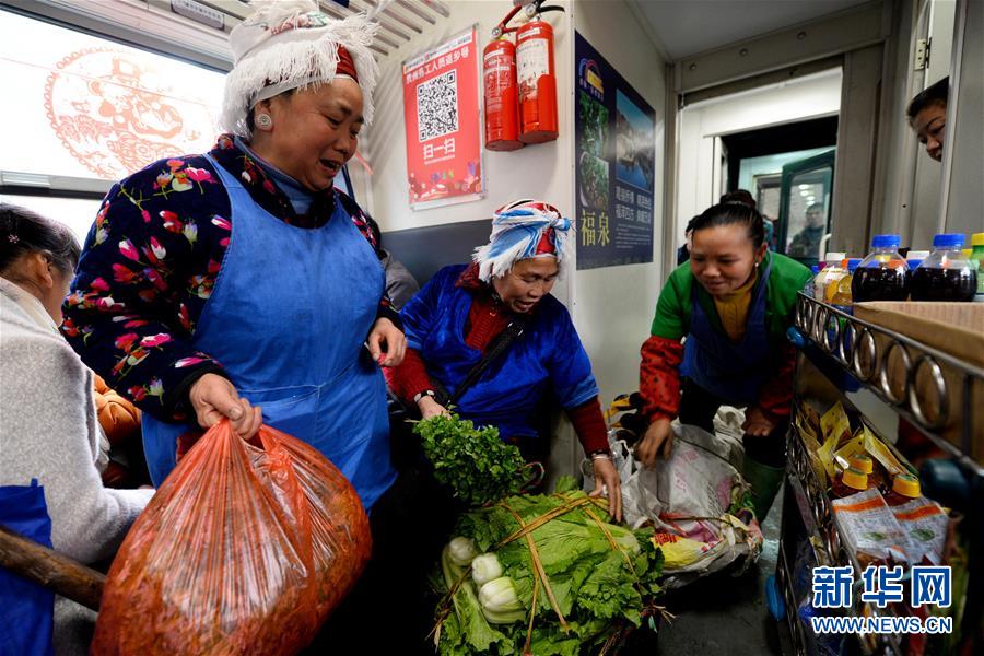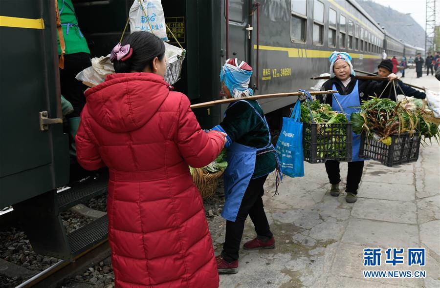 由貴州玉屏開往貴陽的5639次列車是輛綠皮“慢火車”。沿途群眾每天挑著籮筐上車,將自家出產(chǎn)的農(nóng)作物帶到貴陽、凱里等地販賣,再坐著火車把生產(chǎn)資料和日用品帶回家。時間一長,不少乘客直接在列車上買賣貨物。春節(jié)將至,蔬菜水果等農(nóng)產(chǎn)品交易較往日更加紅火,列車上的“年貨市場”洋溢著濃濃年味。 新華社發(fā)(許毅 攝)